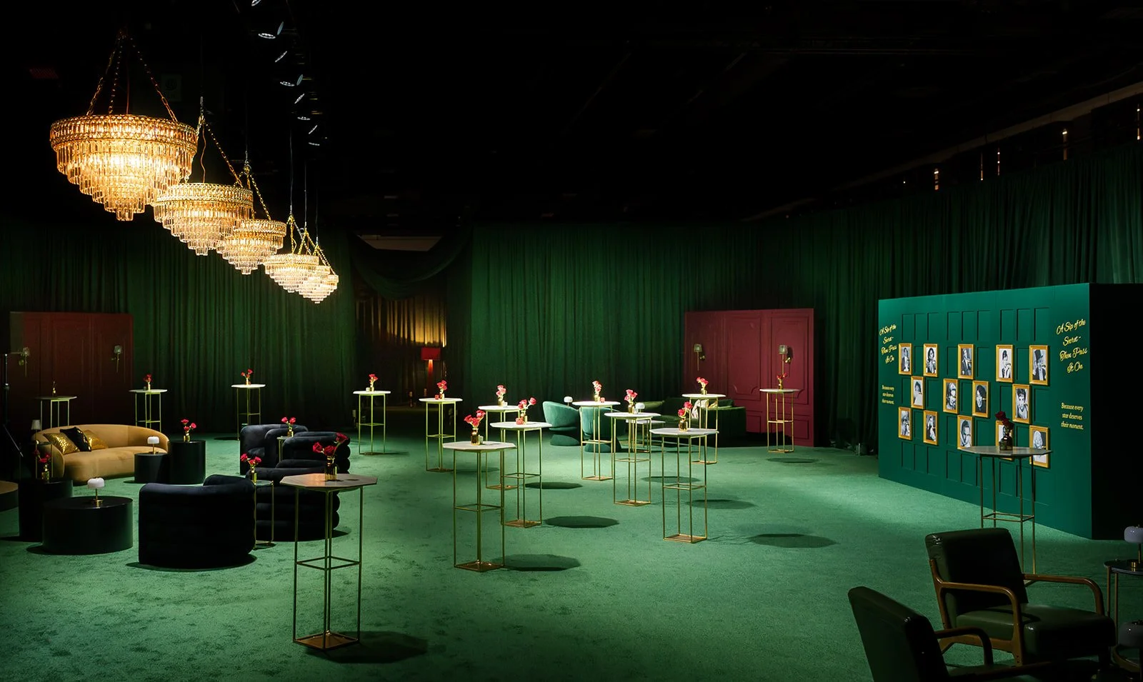 LED walls, dynamic lighting, metallic textures, and interactive digital moments elevate the experience.
